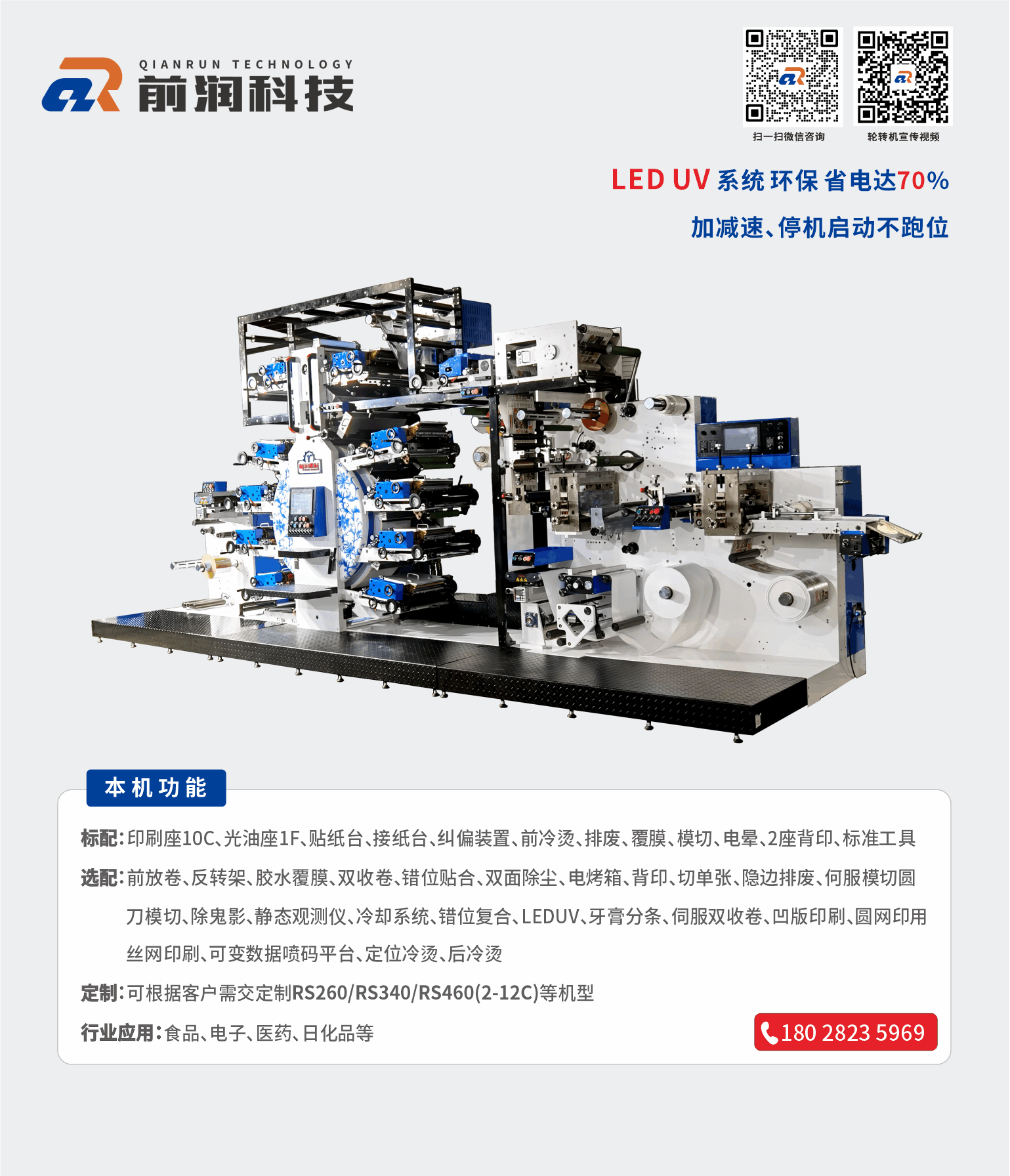 前潤RS260+10C+1F衛星式全輪轉高速凸版標簽印刷機