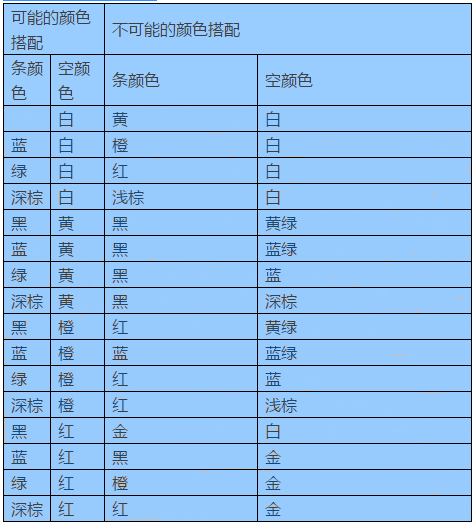 表1:條形碼顏色搭配